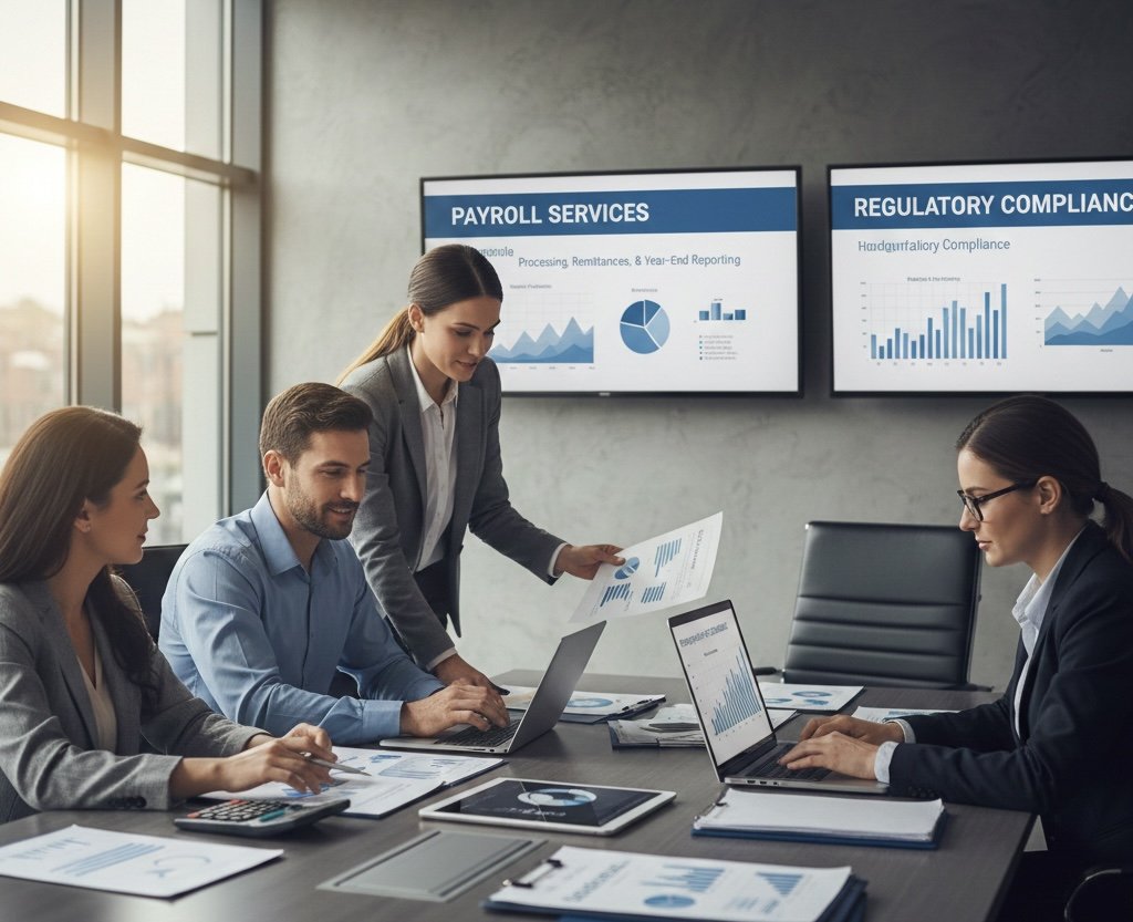 Payroll processing, remittances, and year-end reporting to ensure regulatory compliance.